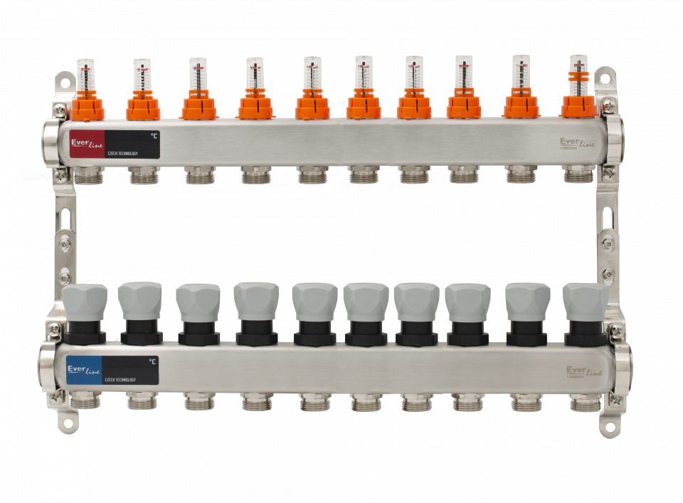 Pe ventilele termostatabile se pot monta cu ușurință servomotoare electrotermice, pentru a controla mai ușor debitul pe fiecare circuit. Distribuitoarele sunt prevăzute cu racorduri cu filet exterior 3/4″, pentru racordarea euroconurilor.