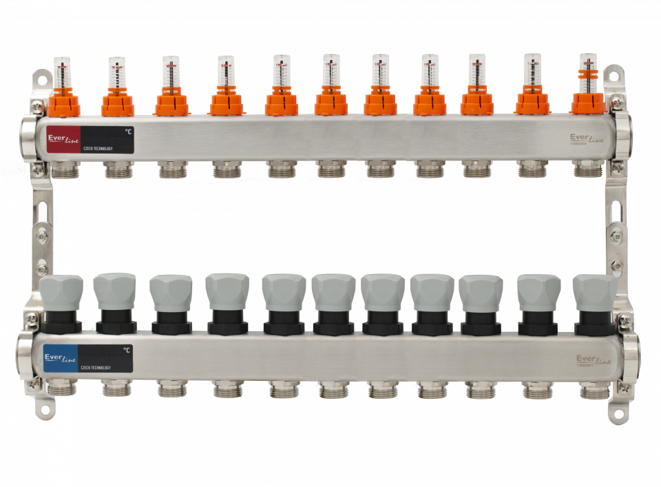 Pe ventilele termostatabile se pot monta cu ușurință servomotoare electrotermice, pentru a controla mai ușor debitul pe fiecare circuit. Distribuitoarele sunt prevăzute cu racorduri cu filet exterior 3/4″, pentru racordarea euroconurilor.